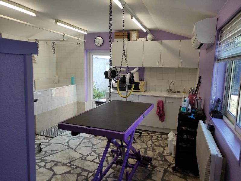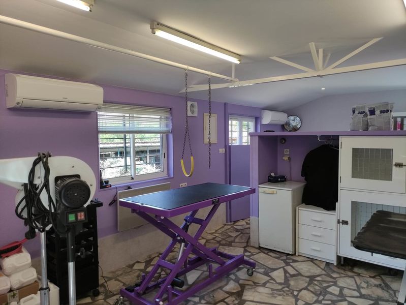 Après que vous ayez laissé votre compagnon entre nos mains, il se peut que l'on ne puisse pas immédiatement s'occuper de lui. Pour celà, le salon du Toilettage de l'Octroi dispose de cinq cages intérieures (deux grandes et trois moyennes - dont une chauffante -), où le chien peut tranquillement attendre son tour sans être importuné par un de ses congénères... (Ceci présente aussi l'avantage d'exclure toute promiscuité fâcheuse pour les femelles en chaleurs). De même, après qu'il ait été toiletté, il y attendra votre retour tranquillement ou simplement endormi...